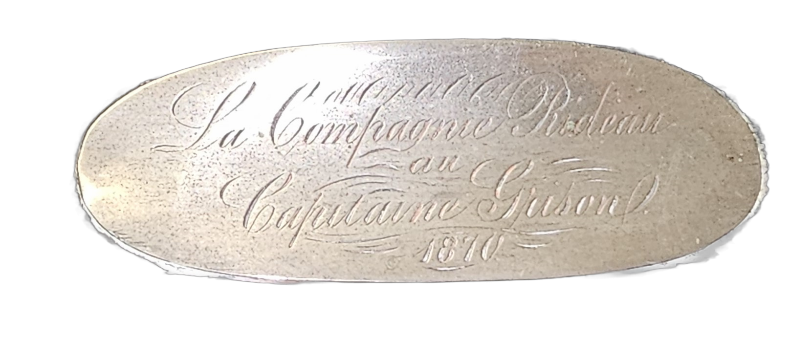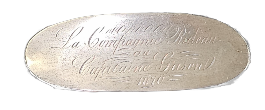 Brian gifted the museum with the inkwell set that was presented to Captain Grison in 1870.